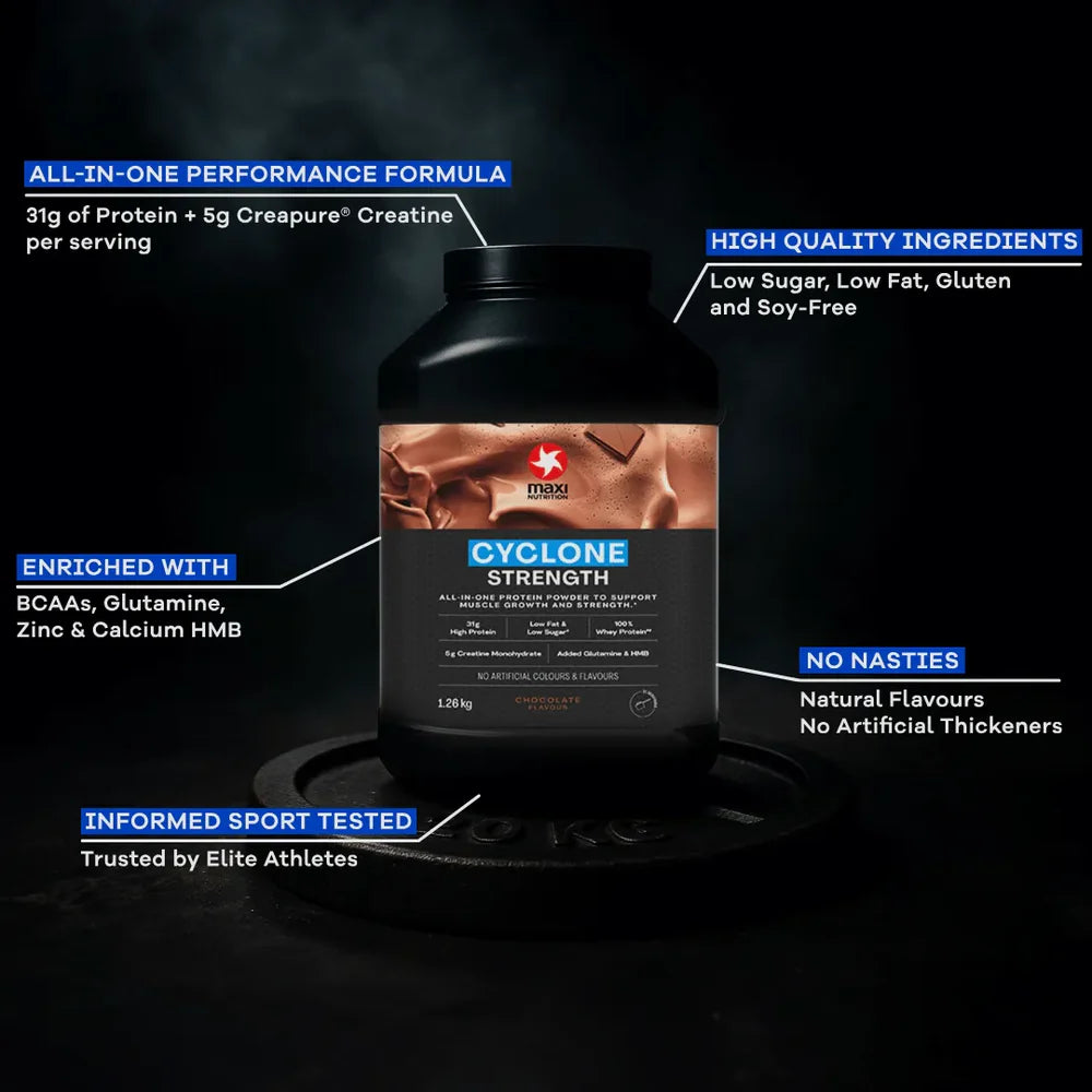 MaxiNutrition Cyclone is the UK’s trusted protein and creatine supplement, scientifically designed to help you build muscle, recover faster, and improve performance. Whether you’re an athlete, gym-goer, or serious lifter, Cyclone gives your body everything it needs after training in one powerful formula.