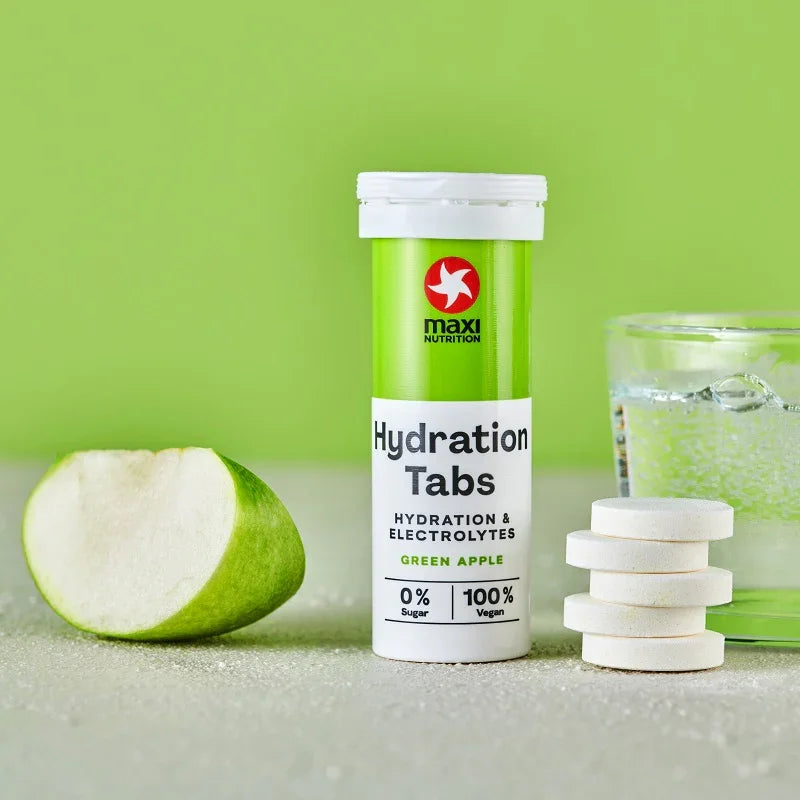 Stay hydrated and energized with Maxi Nutrition Hydration Tabs Apple-Lime. These effervescent tablets are designed to prepare a refreshing electrolyte drink, supporting hydration, recovery, and performance during intense training or daily activity.